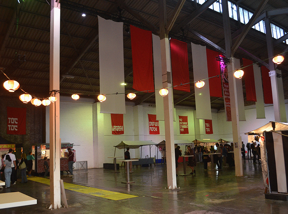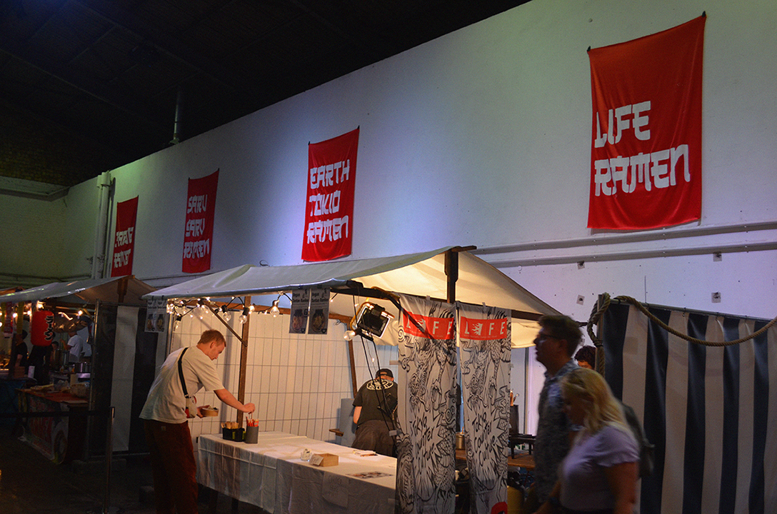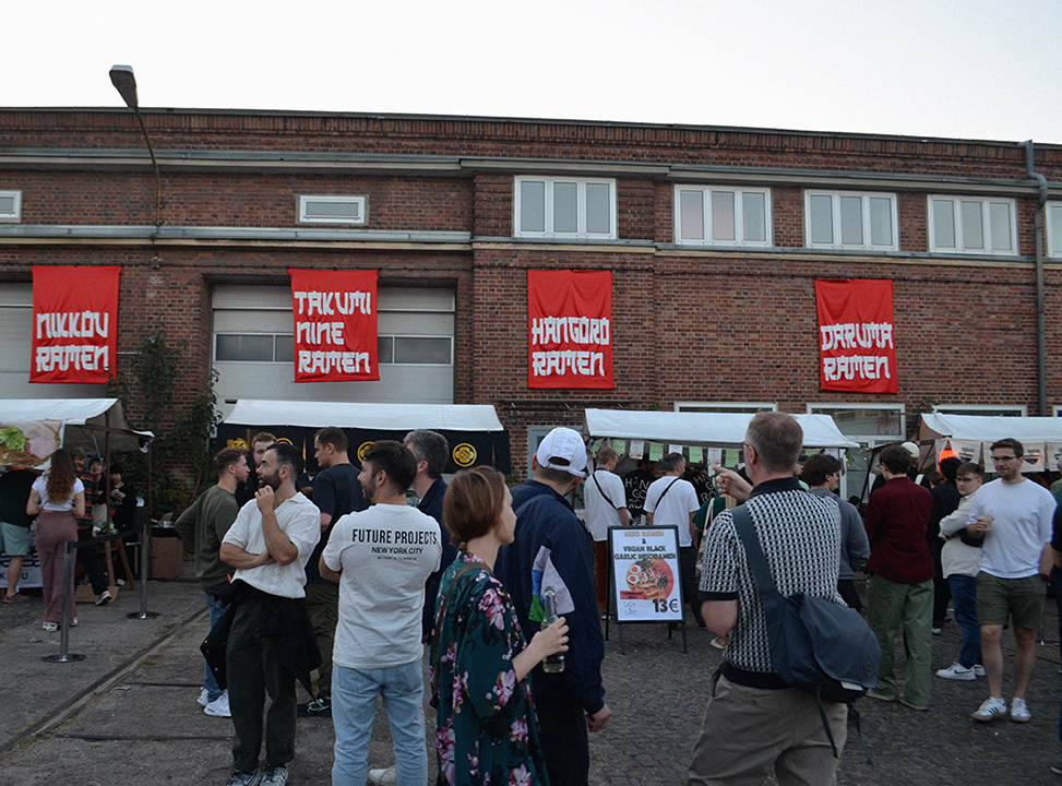 Graphic design, environmental graphics, and custom lettering for the food stand signage, aimed at helping visitors navigate the large spaces of the Napoleón Komplex venue in Berlin.The design work enhanced the festival’s visual identity and improved the visitor experience through clear and visually cohesive wayfinding elements.