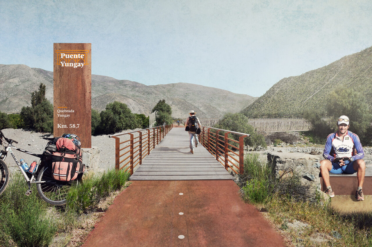 The project involved developing the visual identity and communication strategy for a 90-kilometer Greenway. Signage prototypes were designed, and photomontages were created to help visualize the final project for presentations to various audiences and approval bodies.